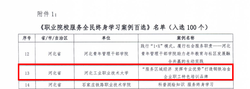 近日,中国成人教育协会公布了《职业院校服务全民终身学习案例百选》案例名单,球速·体育申报的《“服务区域经济发挥专业优势”打造钢铁冶金企业职工特色培训品牌》案例成功入选。