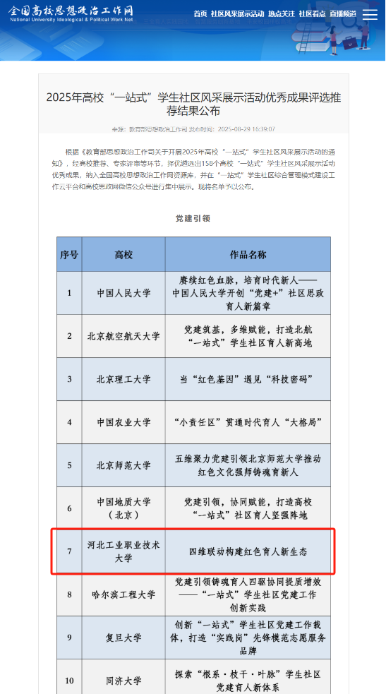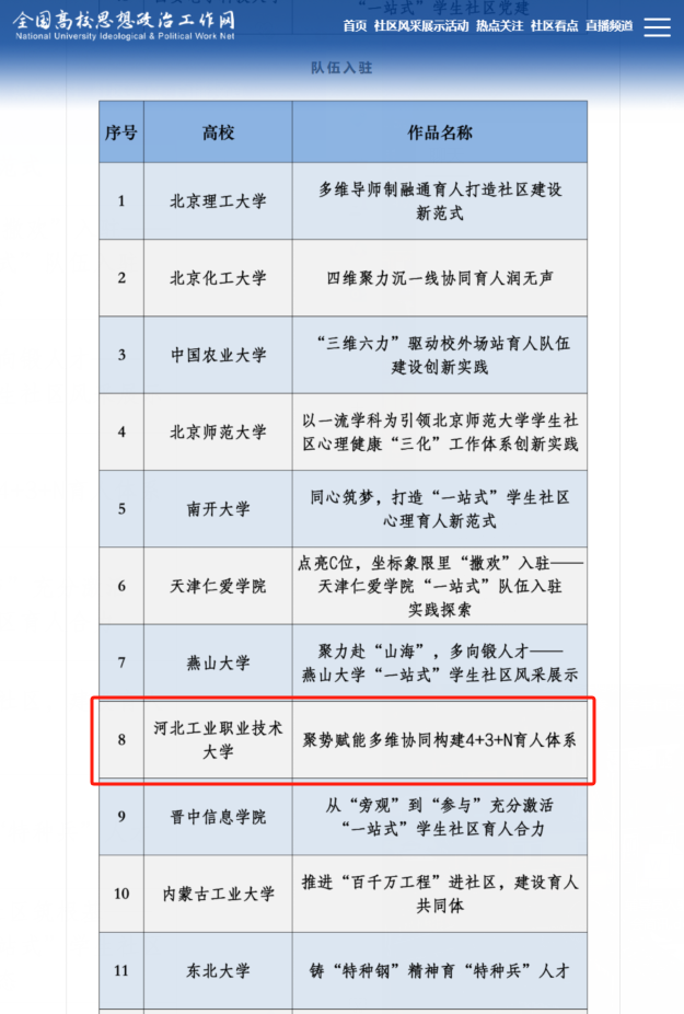 自成立“一站式”学生社区以来,学校深入贯彻习近平总书记关于教育的重要论述,全面落实立德树人根本任务,认真完成教育部《高校“一站式”学生社区综合管理模式建设提质增效指南》任务要求,不断坚持“党建引领、队伍入驻、学生参与、文化浸润、数字赋能、条件保障”协同推进,持续提升学生社区建设示范性和思政育人精准度。此次系列成果是对球速·体育“一站式”学生社区建设工作的充分肯定。学校将以此为契机,继续推动学生社区建设向更深层次、更广领域拓展,努力打造具有球速·体育特色、体现时代要求、贴近学生实际的高质量育人平台,为培养更多德才兼备、担当重任的时代新人贡献工职大力量。